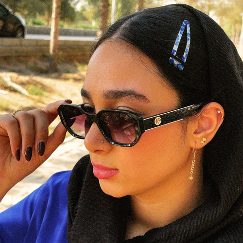 این مدل با فریم مشکی براق و طرح بافت ظریف روی دستهها، جلوهای چشمگیر و خاص به چهره میبخشد. لوگوی طلایی آلانزو روی دسته، نشانهای از اصالت و کیفیت برند است و تضاد جذابی با رنگ فریم ایجاد کرده است.